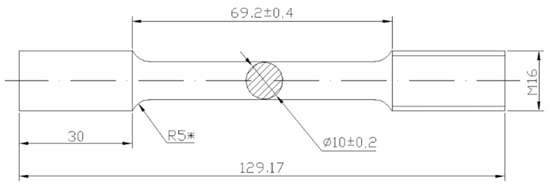 In tensile tests with the attachment having a variable stiffness, solid cylindrical specimens were used, a scheme of which is shown in Figure 1. On one of the gripping parts, a thread is cut to fix it to the tooling rod. This sample geometry meets the requirements of GOST 1497-84 “Metals. Tensile Test Methods “.