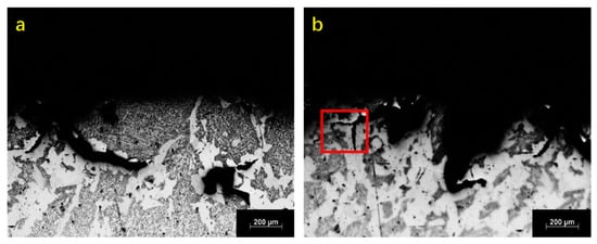 Microscopic morphology of cracks in continuous casting billets, regions 1 (a) and 2 (b).