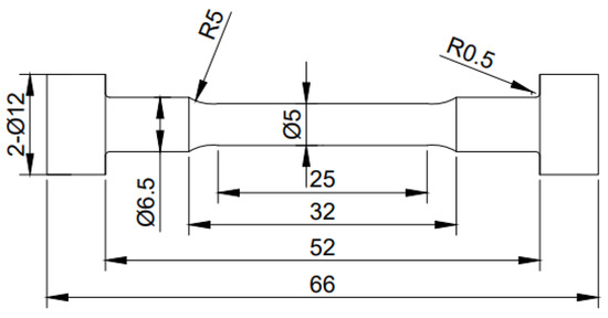 The thermally treated bars were aged for the long term (1000, 5000, 7500 h) in the air at 980 °C and without load. The aged specimens were tested in terms of high-temperature tensile ability and stress rupture property (standard of execution: GB/T 38822-2020). The conditions were 980 °C/309 MPa, 980 °C/270 MPa, and 980 °C/243 MPa, and the temperatures in the high-temperature tensile tests were 980 or 760 °C. All experiments were not stopped until the specimens ruptured. The shape and size of the stress rupture specimens are shown in Figure 1. The 0.2 mm sample was cut close to the creep fracture and perpendicular to the stress direction. After grinding with sandpaper, the sample was electrolytically polished with 20 mL H2SO4 + 80 mLCH3OH electrolyte (25~30 V, 15~20 s). Then, it was etched in 8 g CrO3 + 85 mL H3PO4 + 5 mL H2SO4 electrolyte (5 V, 3~5 s). The microstructure and fracture morphology of the tensile specimens were observed under an S3400N scanning electron microscope (Hitachi, Toyohashi, Japan). Near the creep fracture, a 0.2 mm slice was cut perpendicular to the stress direction and thinned to less than 40 μm with sandpaper. Then, the samples were prepared by the twin-jet electropolishing method with an electrolytic double spray solution of 10% HClO4 + 90% CH3COOH (50~70 V, 30~50 mA, −25 °C). The morphology, size, and type of precipitated phases were characterized under a JEM-2100 transmission electron microscope (Nippon Electron Corporation, Akishima, Japan). For the calculation of the γ phase and γ′ phase sizes in Figure 2, the linear intercept method is used, which means that the field of view in the figure is selected to make a straight line, and the average intercept between the phases is calculated by observing the number of nodes through the formula [25], where d is the average grain size of the alloy and L is the linear intercept grain size.