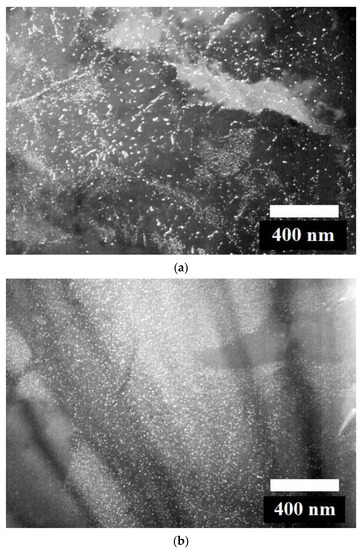 The widespread use of high-strength microalloyed steels is due to a combination of high difficult-to-combine properties: strength, ductility, formability, fatigue, and corrosion resistance, with a relatively simple production technology and low cost. They are used in the manufacture of various vehicles, pipes, building, engineering structures, etc. [1]. The unique set of properties of these steels is ensured by the formation of a finely dispersed homogeneous structure and a system of precipitates of excess phases, including nanosized ones (Figure 1), as a result of a reasonable choice of composition, microalloying system, and parameters of the temperature-deformation treatment of steel. Advances in the development of these steels are based on many studies, summarized in a number of reviews [1,2,3], including those devoted to a specific microalloying system: Ti [4], Nb [5,6], V [7], and Ti-Mo [8].