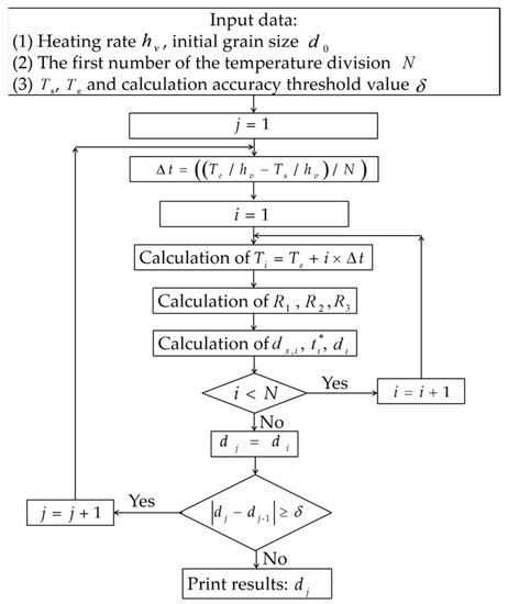The flowchart of the calculation procedure of the grain size in the continuous heating process.