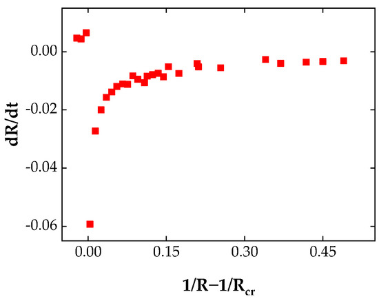 where is a positive coefficient, is the radius of a given grain. is the critical grain radius. Generally, in two-dimensional systems, the critical radius is equal to the average grain radius ().
