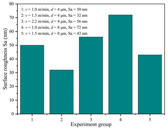 - Since the cutting depth does not change the excitation frequency, it is not the cutting parameter that affects the chatter. However, increasing the cutting depth, the pits will deepen on the basis of the original cutting chatter. Under the same processing parameters, the cutting depth increases from 4 μm to 8 μm, and the surface roughness Sa changes from 50 nm to 72 nm.