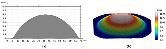 Simulation results are shown in Table 3, while a 3D image of the formed dome with a pressure of 0.50 Mpa is reported in Figure 8.