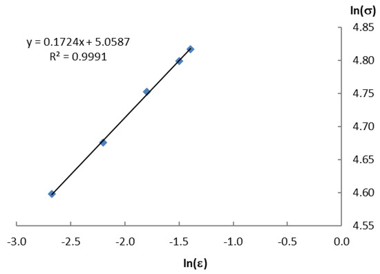 Curve ln (σ) − ln (ε) for the aluminum alloy AA8006.