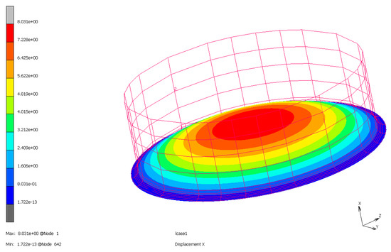 Numeric displacement values along the x axis (vertical direction) obtained with a pressure of 0.50 MPa.