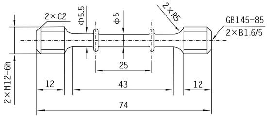 Creep tests for all samples were conducted at 650 °C in an RDL-50 electronic creep machine [19]. Before loading, all specimens were kept at 650 °C for about 1 h to ensure temperature accuracy, and the temperature fluctuation range was controlled within 2 °C. As shown in Figure 1, the creep specimens were processed into a round shape, with a diameter of 5 mm and a gauge length of 25 mm. The experimental design adheres strictly to the dimensions mandated by the standard of GB/T 2039-2012. On account of the boss existence in the end gauge part, the diameter between the gripping and the gauge part is required to be 10% larger than that of the gauge diameter (5 mm) during the machined process, which is to ensure that the creep fracture occurs within the designated gauge length.