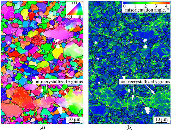 - Humphreys, F.J. Quantitative metallography by electron backscattered diffraction. J. Microsc. 1999, 195, 170–185. [Google Scholar] [CrossRef] [PubMed]