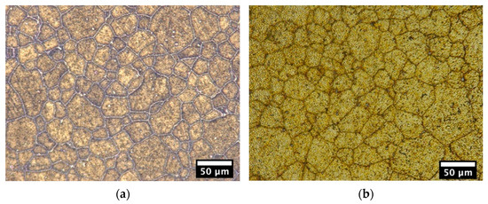 Standard metallographic preparation included cutting, mounting, grinding, polishing, and etching was performed. Weck’s tint etchant was used for etching. Optical and electron micrographs were taken using the digital Keyence VHX-1000E microscope (Keyence Corporation, Osaka, Japan) and the JEOL JSM-7800F Field Emission Scanning Electron Microscope (JEOL Ltd., Tokyo, Japan), respectively. The planimetric intercept method was used to measure the average grain size [31]. The average grain size measurements and intermetallic and precipitate area fraction measurements were calculated using the software ImageJ (1.53a, National Institutes of Health, Bethesda, MD, USA).