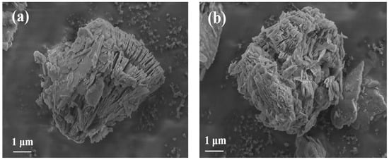 In order to explore the influence of the leaching agent on clay minerals, the raw ore and the tailings after leaching of three kinds of ammonium salts were detected and analyzed via a scanning electron microscope. The results are shown in Figure 11.