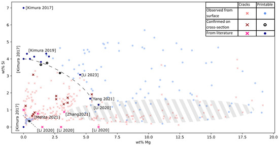 - Strong evidence was found for AlMgSi alloys being printable in two different composition ranges. Either for Si + Mg < 0.7 wt% or for Si + 2/3 Mg > 4 wt% when Mg > 3 wt% and Si > 3 wt%.
