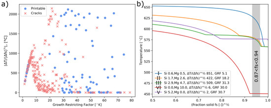 - Kou, S. A criterion for cracking during solidification. Acta Mater. 2015, 88, 366–374. [Google Scholar] [CrossRef]
