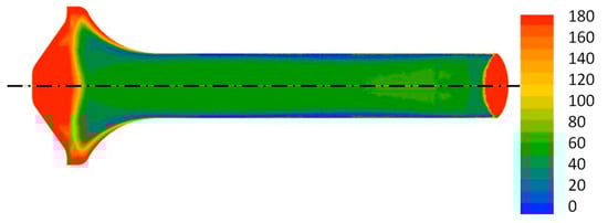 Finally, the length of the extruded samples was measured and compared with the analogous dimensions obtained via simulation, observing a difference that was always lower that 5%. This value fulfills the technological requirements for the considered component.