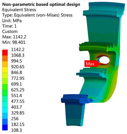 Equivalent stress distribution of the non-parametric-based optimal design.