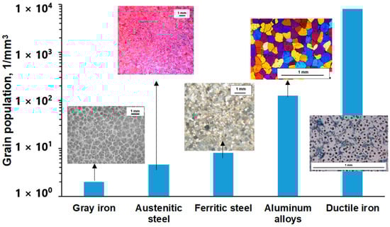 Volumetric grain number in the solidification structure of different cast alloys with a refined structure [3].