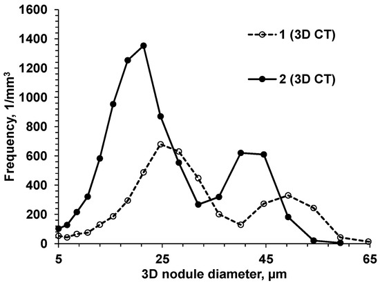 3D nodule diameter distribution obtained from µCT data for two SGIs [10].