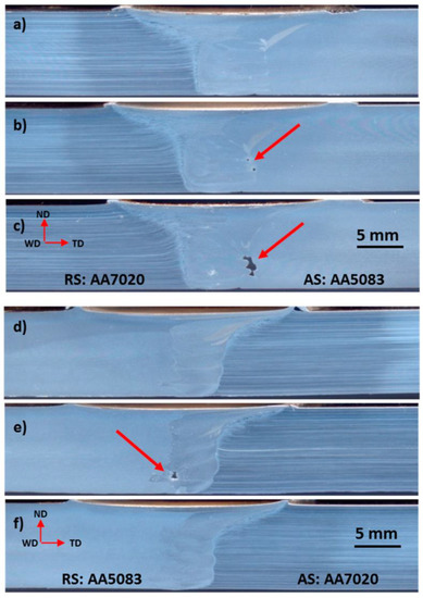 Aluminum alloys are classified into non-heat-treatable and heat-treatable alloys. The first group includes pure aluminum alloys (series 1xxx) and alloys with manganese (3xxx series), silicon (4xxx series), and magnesium (5xxx series) as primary alloying elements. The second group includes aluminum alloys with copper (2xxx series), magnesium and silicon (6xxx series) and zinc (7xxx series) as the main additives [1]. Recently, due to the possibility of exploiting the best properties of each series, the aluminum alloys have been widely combined in many industrial fields including automotive, aerospace, and shipbuilding industries [2,3,4,5,6,7,8,9].