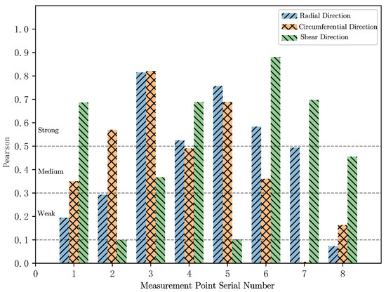 (2) The correlation between the experimental measurement results of initial residual stress and the established numerical simulation results of the ring containing initial residual stress was analyzed. It can be seen that the strong correlation in three directions of each measurement point accounts for over 37.5%, and the moderate correlation accounts for over 62.5%. Compared with the numerical simulation model, the measurement values of residual stress in the overall experiment of 2219 aluminum alloy ring show a moderate and strong correlation with the initial residual stress in three directions. This indicates that the numerical simulation model of 2219 aluminum alloy ring containing initial residual stress can accurately reflect the size and distribution of residual stress inside the actual ring.