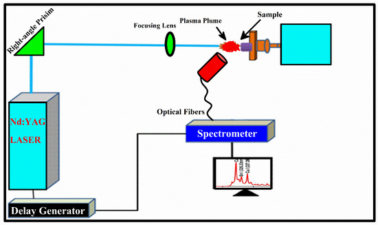 Laser-Induced Breakdown Spectroscopy (LIBS) is the diagnostic tool utilized for quick and fast qualitative and quantitative investigation of materials [9]. LIBS has minimal sample preparation, is contamination-free, micro-destructive, compact size, portable format, and just a single shot of laser permits for the rapid analysis of the sample [10,11,12]. This technique creates plasma by directing a pulsed laser source at the target surface of a gas, solid, or liquid. The plasma emission spectrum created by the laser could be used to estimate the elemental content of any material. The LIBS system has been employed for both quantitative and qualitative analyses throughout the past couple of decades. The most commonly used techniques for alloy composition measurements include X-ray fluorescence-spectroscopy (XRF), photoelectric direct reading spectroscopy, and inductively coupled plasma atomic emission spectroscopy (ICP-AES) [13]. These techniques are costly, required for the sample preparation, time consuming, as well relative to LIBS.