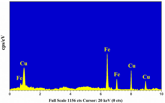 The EDX spectrum of Cu-Fe alloy sample.