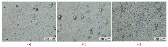 In Figure 9a, the original microstructure is mainly the α (Al) solid solution, and many black impurity phases are distributed on the microstructure. In Figure 9b, it is the quenched microstructure which is consisted of α (Al) matrix. It is embedded with many black impurity phases and a small number of precipitated phases distributed as gray bulk. As can be seen in Figure 9c, which dealt with artificial treatment after quick quenching, the microstructure is a mixture of α (Al) matrix, many grain boundaries and lots of intragranular precipitation phases, lots of precipitation phases hinder the dislocation movement, and the macroscopic mechanical properties can be improved, this is the key to significantly improve the strength of aluminum alloy after artificial aging.
