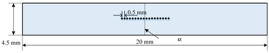 The cross-section of the joint and the microstructure were observed by an Olympus metallography microscope. The hardness of the joint was measured by an HV-1000DT Vickers microhardness tester. The load of the test was 1.98 N, the loading time was 10 s, and the test was measured every 0.5 mm. The hardness test points were arranged along the vertical weld direction, as shown in Figure 3. The tensile test was conducted using an Instron-1186 electronic universal testing machine manufactured by Instron, a US-based company. The size of the tensile sample is shown in Figure 4. The temperature measurements were carried out at positions 5 mm, 10 mm, 15 mm, and 20 mm away from the weld using a RE-Y2101B-CD thermocouple thermometer to obtain the extreme point of the welding thermal cycle curve. The full immersion corrosion test was conducted on the flash-butt welding joints of high nitrogen steel with a sample size of 25 mm × 10 mm × 4.5 mm through etching in 10% H2SO4 solution at room temperature. The weld is arranged along the direction of 25 mm.
