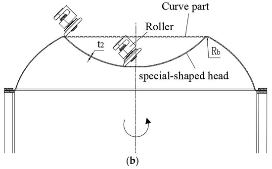 - Liu, B.M.; Gao, S.; Jia, Z.; Wen, Y.Z.; Han, Z.R.; Gong, X. Non-axisymmetric die-less spinning using ball-crown-shape roller. J. Manuf. Process. 2022, 79, 70–80. [Google Scholar] [CrossRef]