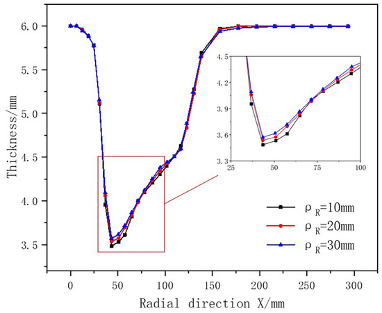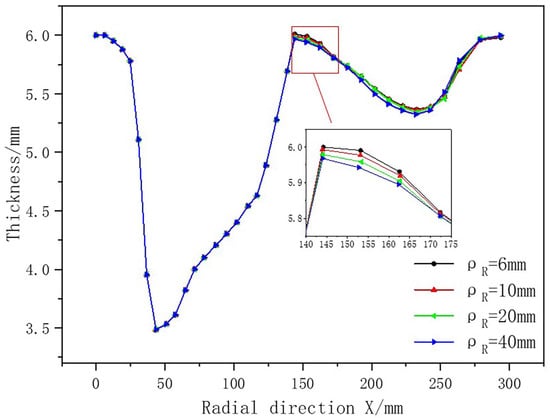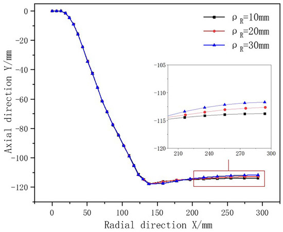4.1.1. Influence of the Roller Fillet Radius on the Forming Accuracy