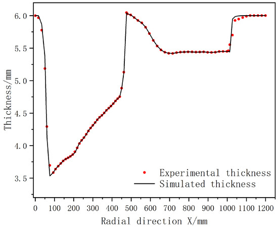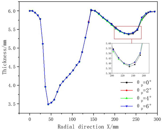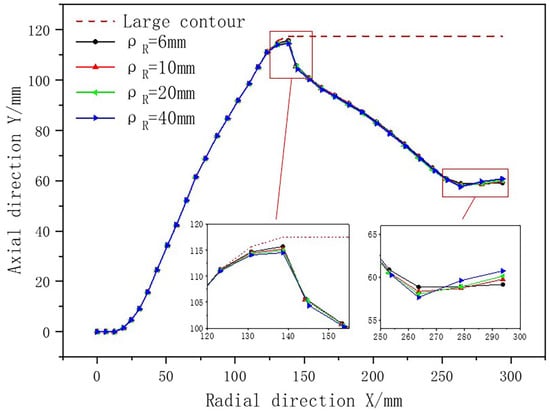 - For large contour forming, increasing the roller fillet radius leads to more serious convexity of the bottom, a larger transition rounding angle, and a larger minimum thickness, and increasing the feed ratio leads to more serious convexity of the bottom of the large contour, a larger minimum thickness, and a poorer surface quality.