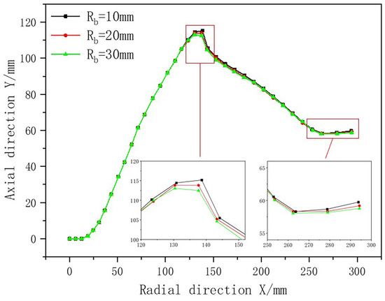 4.2.1. Influence of the Roller Fillet Radius on the Forming Accuracy
