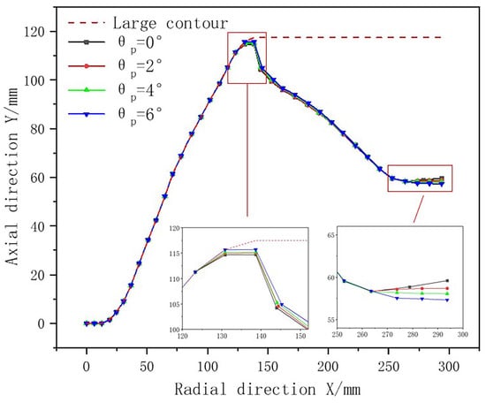 - For small contour forming, increasing the roller fillet radius leads to a larger sinking offset of the transition circle and a larger bottom upper convexity, and increasing the feed ratio leads to a larger bottom upper convexity. A larger transition circle results in a more serious sinking offset of the transition circle and a smaller bottom upper convexity. A larger bottom upper convexity of the large contour leads to a smaller sinking offset of the transition circle, a smaller bottom convexity, and even a flat or negative angle bottom.