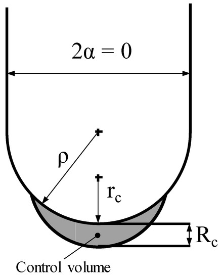 Equations (3) and (4) define the radius of the control volume (Rc) (see Figure 1) under plane strain and plane stress conditions, respectively [25]. In the case of U-shaped notches, the center of the control volume is located at a distance of rc = ρ/2 with respect to the notch tip, i.e., it corresponds to the origin of the local coordinate system [22]. The choice between these conditions depends on the material’s fracture resistance, when Kmat is lower than Equation (5) [2], plane stress domains, while plane strain condition is reached when Kmat is higher than the value defined by Equation (6). For situations where fracture resistance falls between the values defined by these equations, an interpolation of Equations (3) and (4) is required to obtain Rc.
