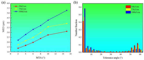 MED varied with MTA (a) and the distribution of boundary misorientation (b).