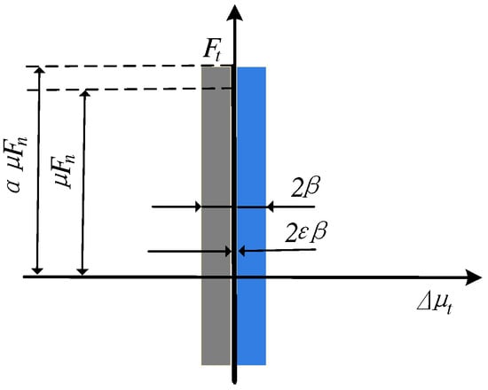 By applying the viscous–sliding friction model [22], the transition from viscous to sliding friction during the thermal expansion and deformation of an object can be effectively simulated. This process can be expressed by Equation (1), as shown in Figure 3 [22].