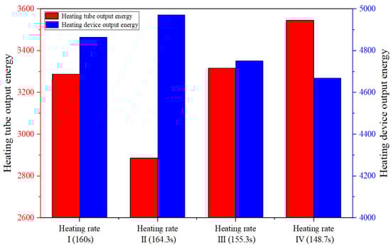 Comparison of output energy of heating tube and heating devices under four different heating rate strategies.