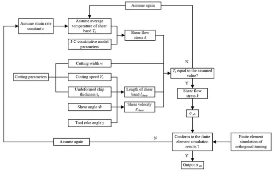 The distribution of normal stress on the tool crater wear surface (expressed by shear flow stress k) can be solved, and the flowchart is shown in Figure 14. The fresh tool can be regarded as a special worn stage KT = 0.