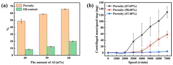 - The oil content of porous copper increased with increasing porosity, reaching 20.18% on the specimen with the highest porosity of 67.69%. On the other hand, the oil-retention capacity of porous copper decreased with the increase in porosity. The nanoporous copper with a porosity about 47.48% can achieve a high oil retention of 97.12% at a centrifugal speed of 7000 (r/min).