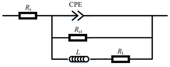 To further quantitively study the corrosion behavior, the EIS plots were fitted with the equivalent circuit diagram shown in Figure 4. In this figure, RS is the solution resistance between the reference electrode and the working electrode. CPE is the constant phase element and can be calculated as ZCPE = Y0−1 (jω)−1. Rct is the charge transfer resistance. L is the inductance, and RL is the inductance resistance. Rct is inverse to the corrosion rate, so a large Rct corresponds to a low corrosion rate.