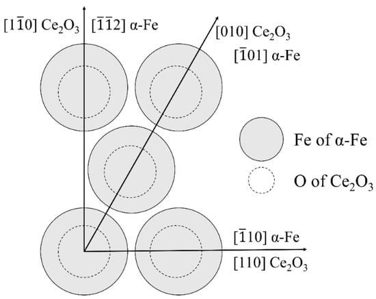 Ce2O3(001)∥α-Fe(111) mismatch model.