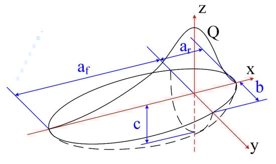 where q(f) and q(r) are the volumetric heat flow density before and after the model, respectively, and Q is the total introduced power; af, ar, b, and c are the length, width, and depth before and after the predicted melt pool, respectively. Figure 7 provides a visual representation of the model.