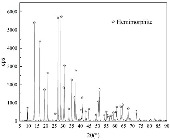 Both in China and worldwide, an increasingly broad range of applications require the use of zinc and zinc compounds, necessitating in-depth research on the improvement of the methods for the extraction of zinc from ores. To date, metallic zinc has been mainly extracted from the zinc sulfide ore because zinc sulfide can be easily separated from gangue minerals by the traditional flotation process [,]. With the increasing development and growth of the Chinese economy, its demand for zinc has also increased continuously, leading to an ongoing increase in the use of zinc sulfide ores. This has given rise to a gradual exhaustion of the zinc sulfide ore resources, which has made zinc oxide ore resources increasingly important. In particular, zinc oxide ore occurs in the oxidation zone of lead-zinc sulfide deposits. It generally consists of oxidized products of sphalerite that coexist with smithsonite, galena, and limonite.