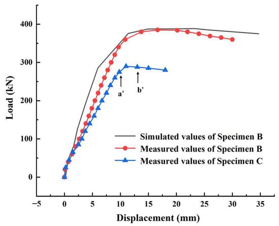 Diagram of the load–displacement curves of specimens B and C.