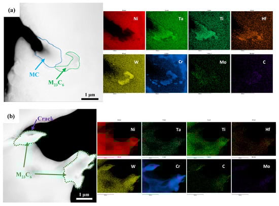 - Song, X.Q.; Wang, Y.X.; Zhao, X.X.; Zhang, J.; Li, Y.; Wang, Y.F.; Chen, Z. ChAnalysis of carbide transformation in MC-M23C6 and its effect on mechanical properties of Ni-based superalloy. J. Alloys Compd. 2022, 911, 164959. [Google Scholar] [CrossRef]