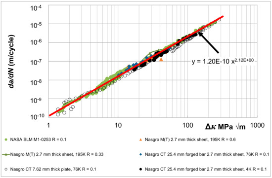 - The R = 0.1 crack growth curve given by Kim et al. [55] for LPBF Inconel 718;