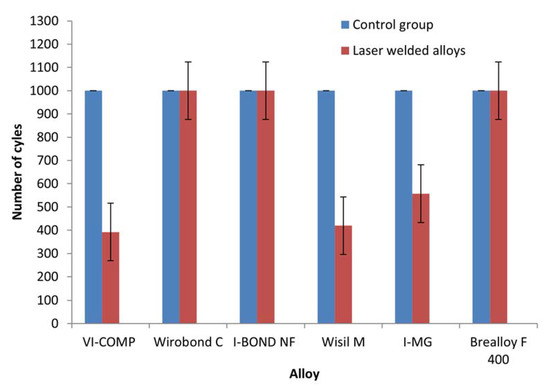 - The laser-welded alloys withstood an average of 728 cycles, while the samples in all control groups withstood a maximum of 1000 cycles. However, the results of the dynamic load tests do not differ significantly.