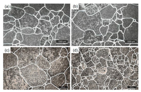 Microstructure of the cruciform intersection (a,b) without rolling and (c,d) with rolling [142].