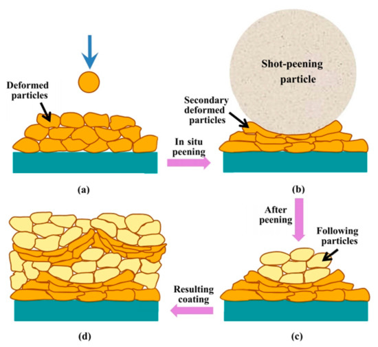 - Luo, X.T.; Wei, Y.K.; Wang, Y.; Li, C.J. Microstructure and mechanical property of Ti and Ti6Al4V prepared by an in-situ shot peening assisted cold spraying. Mater. Des. 2015, 85, 527–533. [Google Scholar] [CrossRef]