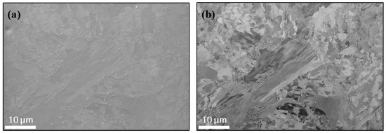 SEM micrographs of ANP-10 using (a) SE detector and (b) BSE detector.