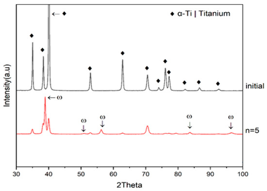 XRD date for CP-Ti in the initial state and after HPT n = 5 [28].