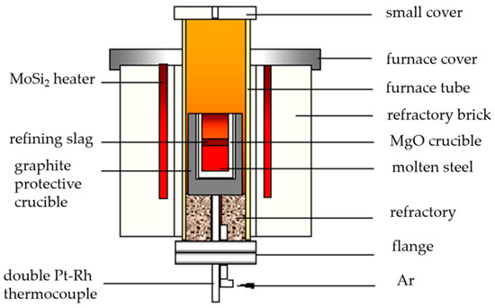 The experiment of adding alkali metal carbonate to cord steel was carried out in a laboratory resistance furnace, and the device is shown in Figure 1. The test steps were as follows:
